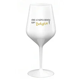 VÍNO JE NÁPOJ BOHOV. SOM BOHYŇA! - biely nerozbitný pohár na víno 470 ml