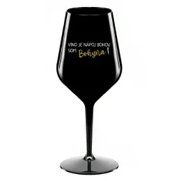 VÍNO JE NÁPOJ BOHOV. SOM BOHYŇA! - čierny nerozbitný pohár na víno 470 ml