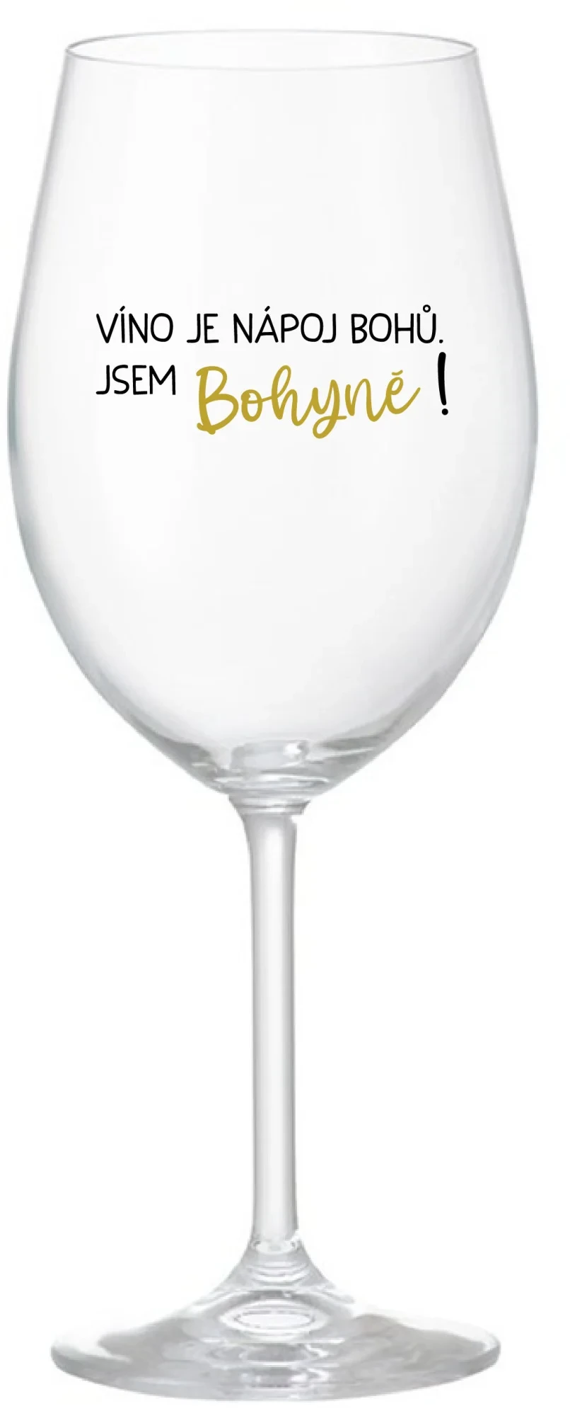 VÍNO JE NÁPOJ BOHŮ. JSEM BOHYNĚ! - čirá sklenice na víno 350 ml