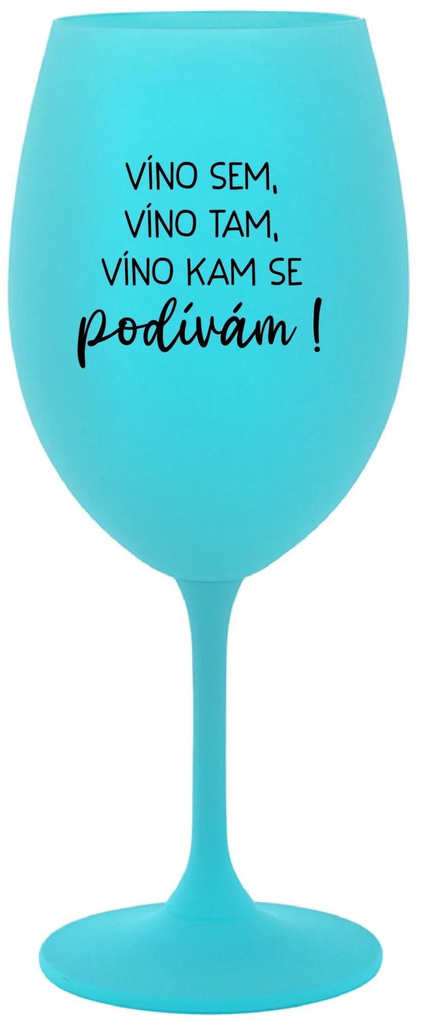 VÍNO SEM, VÍNO TAM, VÍNO KAM SE PODÍVÁM! - tyrkysová sklenice na víno 350 ml