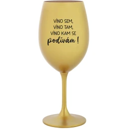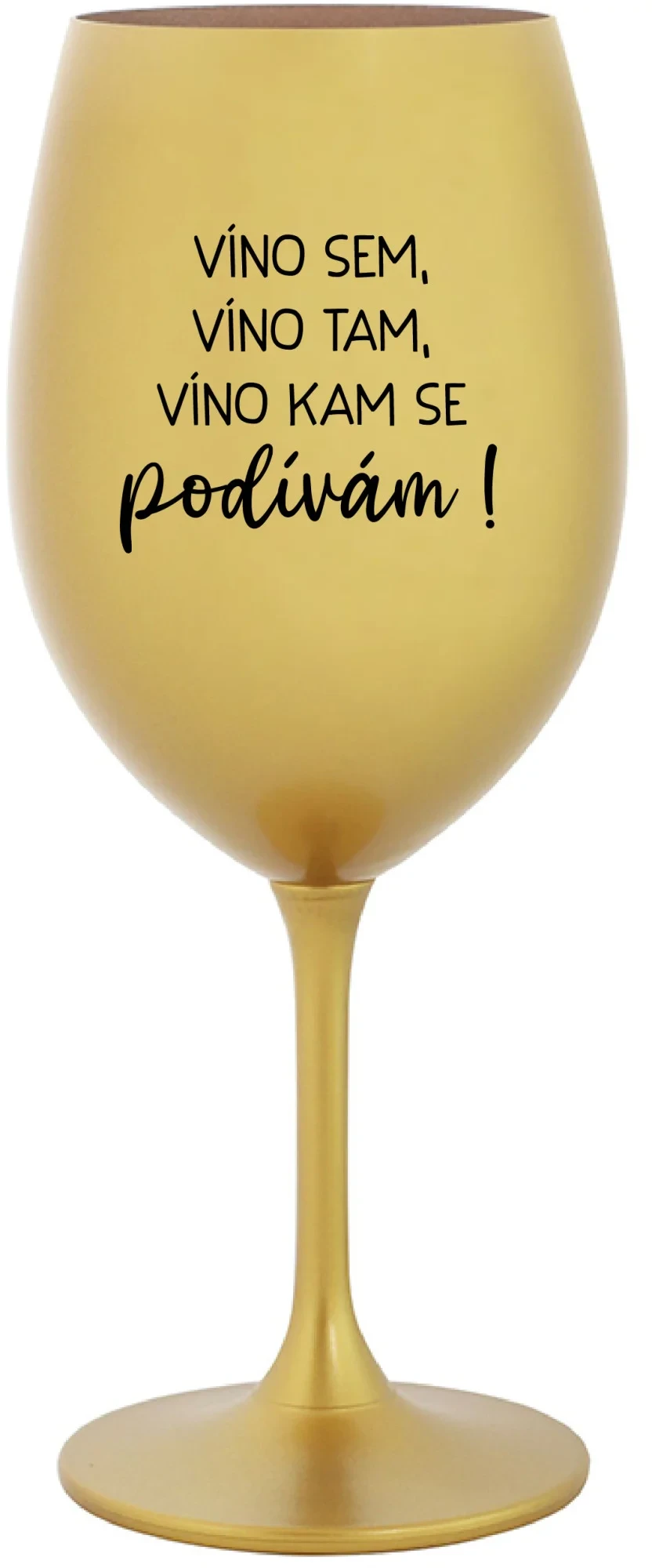 VÍNO SEM, VÍNO TAM, VÍNO KAM SE PODÍVÁM! - zlatá sklenice na víno 350 ml