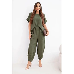 Objevte jedinečný komplet vyrobený z prodyšné a jemné viskózy, který kombinuje styl a pohodlí při nošení. Halenka s klasickým střihem skvěle padne na postavu, zajišťuje volnost pohybu a elegantní vzhled. Díky lehké tkanině je velmi příjemná na pokožce a ideální pro každé roční období. Kalhoty, navržené s důrazem na pohodlí, mají elastický pas a volnější střih, což zajišťuje skvělé přizpůsobení postavě. Jedná se o univerzální soupravu, která se skvěle hodí jak pro každodenní outfity, tak pro elegantnější příležitosti. Zvolte komplet z viskózy, pokud si ceníte lehkosti, přírodních tkanin a moderního vzhledu. Perfektní volba pro ženy, které se chtějí cítit stylově a pohodlně po celý den. Velikost je univerzální a vhodná pro ženy nosící velikost S, M nebo L.