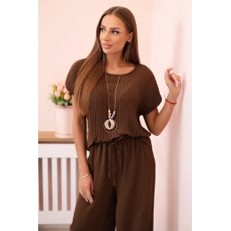 Viskózová súprava plisovaná blúzka + nohavice hnedá