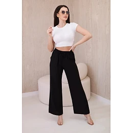 Viskózové nohavice so širokými nohavicami čierne