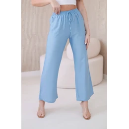 Viskózové nohavice so širokými nohavicami modré