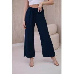 Viskózové kalhoty se širokými nohavicemi Námořnická modř
