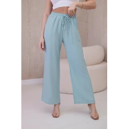 Viskózové kalhoty se širokými nohavicemi tmavá máta