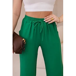 Široké nohavice z viskózy sú jedinečným kúskom oblečenia, ktorý spája pohodlie a eleganciu. Tieto nohavice sú vyrobené z ľahkého a vzdušného viskózového materiálu a zaručujú nielen voľnosť pohybu, ale aj pocit ľahkosti a sviežosti počas celého dňa. Široké nohavice dodávajú nohaviciam charakteristický, voľný strih, ktorý je módny a pohodlný. Vďaka tomuto prvku vyzerajú nohavice mimoriadne štýlovo a pôsobivo a dodajú každému štýlu originalitu. Vďaka univerzálnemu dizajnu širokých nohavíc sú vhodné na rôzne príležitosti a štýly. Môžete ich nosiť ku každodennému ležérnemu oblečeniu, ako aj k elegantnejším outfitom na obchodné stretnutia alebo večerné prechádzky. Široké nohavice z viskózy sú ideálnou voľbou pre ženy, ktoré ocenia pohodlie a štýl. Vďaka svojmu univerzálnemu dizajnu a kvalitnému spracovaniu sú tieto nohavice nenahraditeľným kúskom šatníka, ktorý dokonale doplní každú zbierku oblečenia. Veľkosť je univerzálna a je vhodná pre ženy, ktoré nosia veľkosť S, M alebo L.
