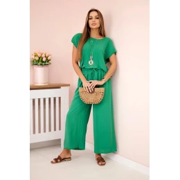 Viskózový komplet plisovaná halenka + kalhoty zelený
