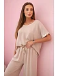 Tento jedinečný komplet spojuje pohodlí a elegantní styl, což z něj činí ideální volbu pro ženy, které ocení jemné, ale výrazné akcenty. Vyrobený z lehké, prodyšné viskózy, zajišťuje maximální pohodlí po celý den. Jemná tkanina krásně splývá s postavou a zvýrazňuje její přirozené přednosti. Zlaté lemování dodává celému outfitu výjimečný luxusní vzhled, přitahuje pozornost a přidává eleganci. Tento komplet je tak skvělou volbou jak pro každodenní nošení, tak i pro formálnější příležitosti. Můžete jej kombinovat s oblíbenými doplňky a vytvořit jedinečné styly odpovídající vašemu vkusu. Vyberte si viskózový komplet se zlatým lemováním a ciťte se elegantně a stylově v každé situaci. Velikost je univerzální a vhodná pro ženy nosící velikosti S, M nebo L.
