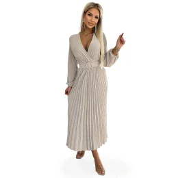 VIVIANA - plisované dámské midi šaty s přeloženým obálkovým výstřihem, dlouhými rukávy a širokým opaskem.