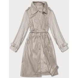 Voľný dámsky kabát z ekologickej kože J Style v teplej béžovej farbe (11Z8101)