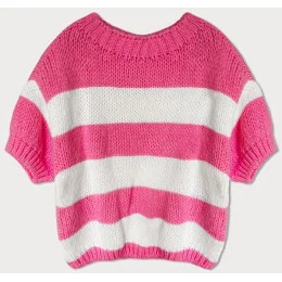 Volný dámský pruhovaný svetr v neonově růžové barvě model 19735951 - MADE IN ITALY