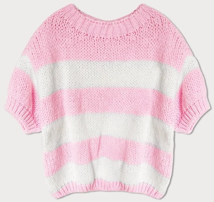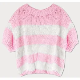 Volný růžový dámský pruhovaný svetr model 19735947 - MADE IN ITALY