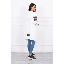 Představujeme vám dlouhou pelerínu s kapucí a nápisy. Svetr je vyroben z vysoce kvalitního materiálu. Velikost je univerzální a bude vhodná pro dámy ve velikostech S, M a L