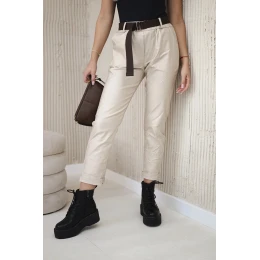 Tieto nohavice s voskovaným pásom sú štýlovou a modernou ponukou pre ľudí, ktorí oceňujú módny vzhľad a pohodlie. Sú vyrobené z voskovaného materiálu s mierne lesklou štruktúrou a štýlu dodávajú odvážny a elegantný charakter. Priliehavý strih zvýrazňuje postavu a pás dodáva úhľadnosť a zabezpečuje dokonalé prispôsobenie. Tieto nohavice sú ideálne na ležérne aj sofistikovanejšie komplety, na každodenné nosenie aj na večerné vychádzky, a ponúkajú jedinečný, moderný vzhľad. Veľkosť je univerzálna a bude vhodná pre ženy, ktoré nosia veľkosť S, M alebo L.