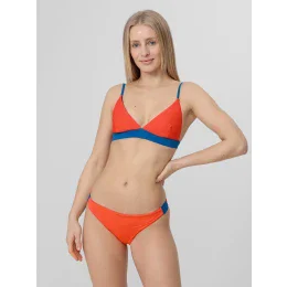 Vrchný diel plaviek 4F je vyrobený z príjemného, rýchloschnúceho materiálu. Elasticita tkaniny zaručuje prispôsobenie a pohodlie počas letných aktivít. Trojuholníkový tvar košíčkov so zadným zapínaním a nastaviteľnými ramienkami.