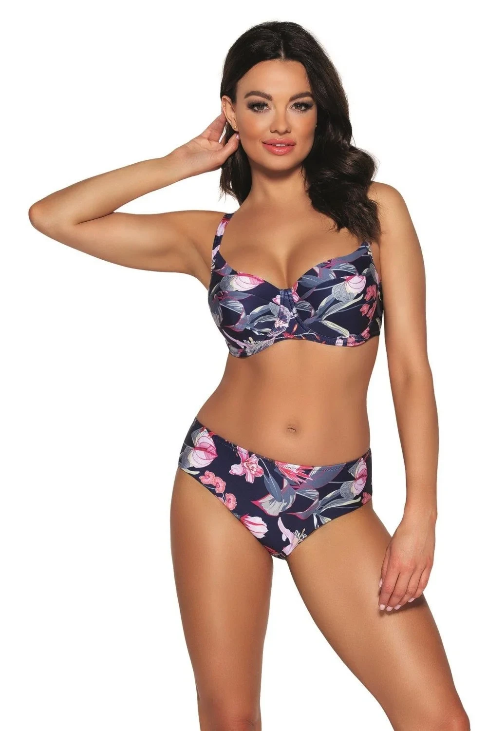 Vrchný diel plaviek 173 Flowers AVA - tmavomodrý - vyrobený z kvalitného vzorovaného mikrovlákna - vystužené košíčky - podprsenka - nastaviteľné a neodnímateľné ramienka - zapínanie na chrbte Zloženie materiálu: 80% polyamid + 20% elastan
