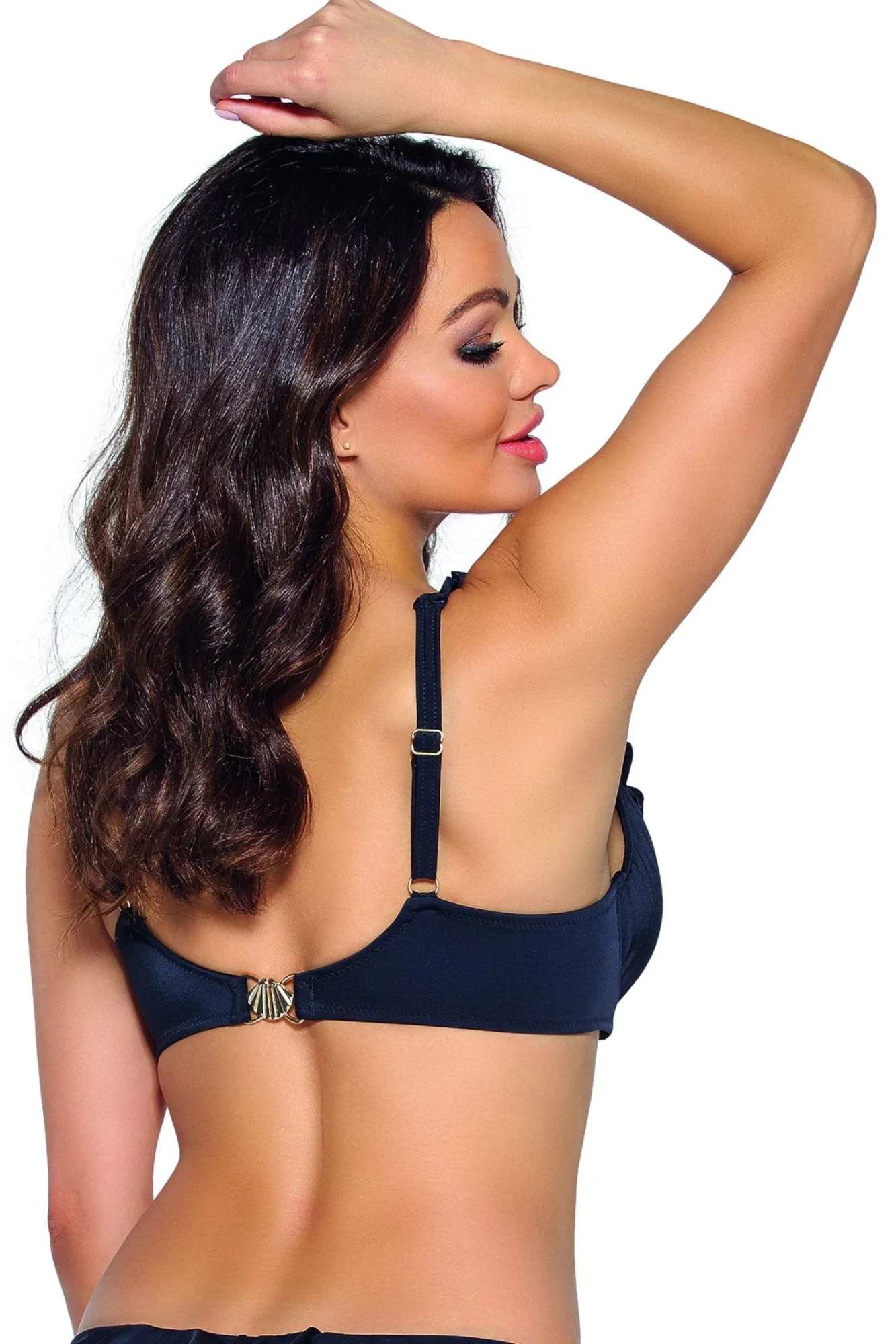Vrchný diel plaviek 213 plus AVA - čierny - vyrobený z kvalitného mikrovlákna - mäkké košíčky - kostice - výstrih a ramienka zdobené volánikmi - nastaviteľné ramienka - zapínanie na chrbte Zloženie materiálu: 80% polyamid + 20% elastan