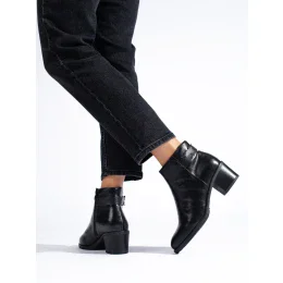 Výborné černé dámské kotníčkové boty na plochém podpatku