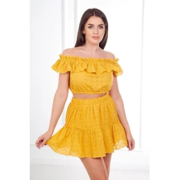 Vyšívaná súprava s horčicovou blúzkou s bodkami