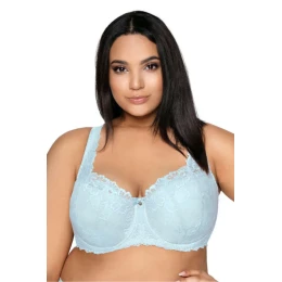 Fenomenálna veľká podprsenka Carmela, dostupná vo veľkých veľkostiach. Krásne zvýrazňuje dekolt, dokonale spevňuje poprsie. Široké ozdobné ramienko umožňuje zakryť asymetriu pŕs. Košíčky sú vyrobené z mäkkej modrej čipky, ktorá sexi objíma prsia a jemne sa plazí po ramienku. Tvarované košíčky sú posadené na čipkovanej kostici a čipkovanom chrbte, ktorý bol vystužený elastickou sieťovinou. Ramienka sú nastaviteľné, neodnímateľné. Zapínanie na dvojitý háčik a očko s trojcestným nastavením.