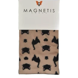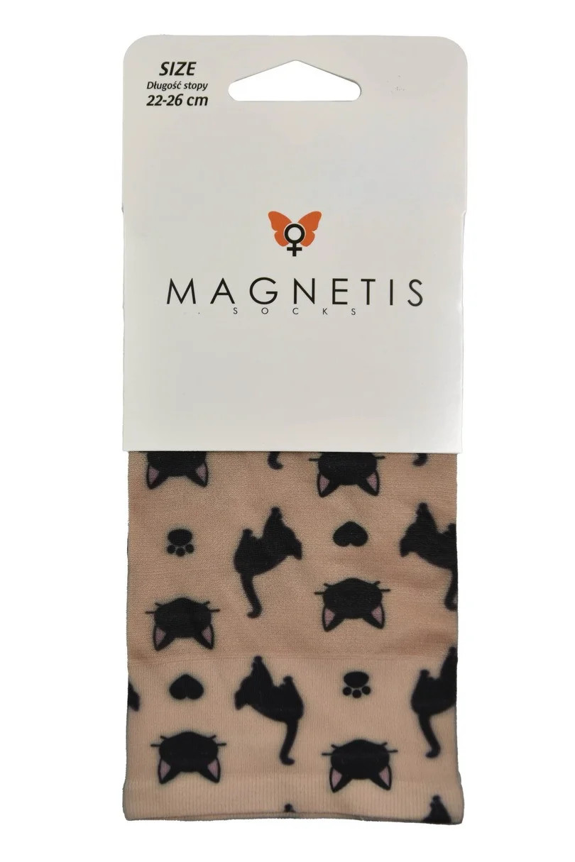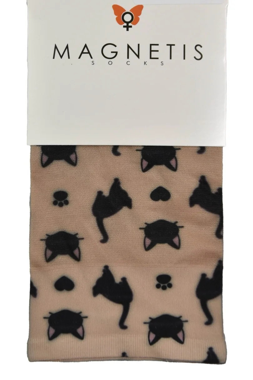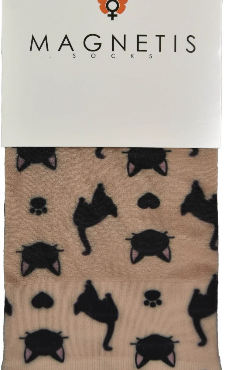 Dodaj odrobinę uroku i humoru do swojej garderoby dzięki rajstopom MAGNETIS z uroczym motywem czarnych kotków! Ten model to połączenie wygody, jakości i unikalnego stylu. Transparentna tkanina w beżowym odcieniu została ozdobiona zabawnym, powtarzającym się wzorem przedstawiającym sylwetki kotów, kocie łapki oraz pyszczki z uszkami. Wykonane z miękkiego i elastycznego materiału (88% poliamid i 12% elastan), rajstopy idealnie dopasowują się do nóg, zapewniając komfort i trwałość przez cały dzień. To świetny wybór dla wszystkich miłośniczek kotów i nietuzinkowych dodatków.