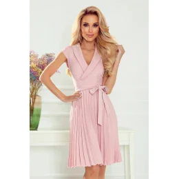 WENDY - Dámske plisované šaty v púdrovo ružovej farbe s preloženým obálkovým výstrihom 385-1