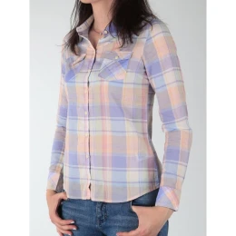Dámska kockovaná košeľa klasického strihu, dlhé rukávy, dve vrecká na prednej strane.