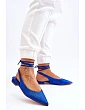 Modne baleriny z odkrytą piętą i noskiem w szpic zostały wykonane z materiału tekstylnego. Cholewka została dodatkowo ozdobiona dżetami. Miękka, eko skórzana wkładka zapewni komfort podczas użytkowania. Baleriny posiadają płaski obcas oraz wiązanie wokół łydki. Świetny model na cieplejsze dni! Podczas wyboru rozmiaru prosimy sugerować się tabelą rozmiarów.