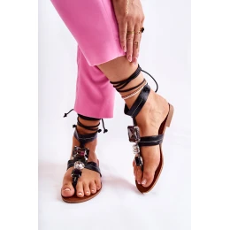 Wiązane Sandały Japonki Z Kryształami Czarne Shendon