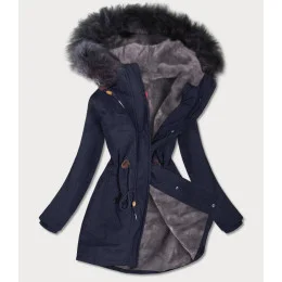 Tmavomodrá nepremokavá dámska bunda parka s kožušinovou podšívkou (m-933)
