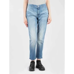 Dámske džínsové nohavice s vysokým pásom, zúženými nohavicami, zapínaním na zips a gombík.