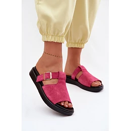 Dámske šľapky z prírodného semišu sú štýlovou ponukou na teplé dni. Mäkký a kvalitný materiál im dodáva elegantný vzhľad a zároveň poskytuje pohodlie pri každodennom nosení. Model je umiestnený na platforme, ktorá jemne nadvihuje postavu a zaručuje stabilitu a pohodlie pri chôdzi. Pásik so zlatou prackou plní praktickú aj ozdobnú funkciu, umožňuje lepšie prispôsobenie a dodáva celku módny charakter. Je ideálnou voľbou pre ženy, ktoré ocenia kombináciu pohodlia, kvality a moderného štýlu.