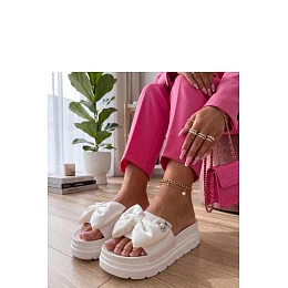 Tieto štýlové papuče s ozdobnou mašľou sú ideálnou voľbou na teplé dni pre tých, ktorí oceňujú pohodlie a módny vzhľad. Sú vyrobené z odolného materiálu vyrobeného z umelej hmoty, sú ľahké, ľahko sa udržiavajú v čistote a skvele sa hodia na doma aj na cesty. Masívny strih umožňuje rýchle a bezproblémové obúvanie a stielka z umelej hmoty zaručuje pohodlie pri každodennom nosení. Model stojí na stabilnej platforme s výškou 5 cm, ktorá jemne nadvihuje postavu a dodáva moderný charakter. Sú to praktické a štýlové papuče, ktoré budú skvelým doplnkom letného outfitu.