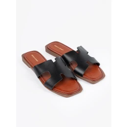 Zajímavé dámské nazouváky černé na plochém podpatku