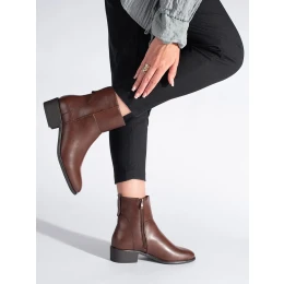 Zajímavé kotníčkové boty dámské hnědé na plochém podpatku