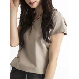 tmavobéžové tričkoCircle Smooth dámske tričko z bavlny príjemnej na dotyk je obľúbené u mnohých žien, ktoré si bez neho nevedia predstaviť svoj každodenný outfit. Takýto strih je veľmi pohodlný a zároveň univerzálny a nadčasový, pretože sa hodí k mnohým iným odevom a nikdy nevyjde z módy. Naše základné dámske tričko má klasický okrúhly výstrih, krátke rukávy a voľný strih, ktorý pohodlne sedí na tele a neobmedzuje v pohybe. Je vyrobené z kvalitného materiálu s prevažne čisto bavlneným zložením, takže je priedušné a príjemné na dotyk. Pre tento model je k dispozícii celý rad módnych farieb, aby vyzeral in- your-face a hodil sa k iným outfitom. Takéto jednoduché dámske tričko vyzerá skvele v kombinácii s džínsami, šortkami alebo sukňou.