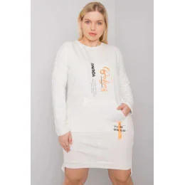 Dámske plus size šaty s vreckom vo farbe ecru. Dlhé rukávy.