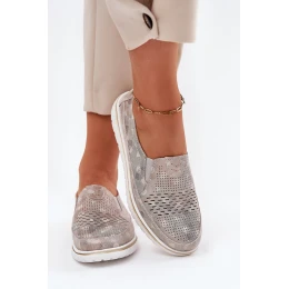 Zamszowe Półbuty Wsuwane Beżowo-Złote Inez