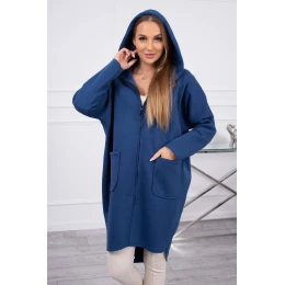 Zateplená mikina na zip s prodlouženým zadním model 18747786 džínovina - K-Fashion