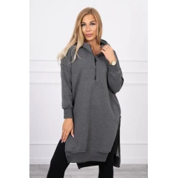 Zateplená mikina s bočnými rázporkami grafitová