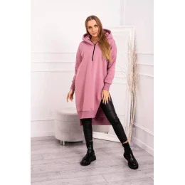 Zateplená mikina s bočními rozparky tmavě růžová