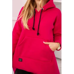 Zateplená mikina s dlhým chrbtom a kapucňou fuchsiová