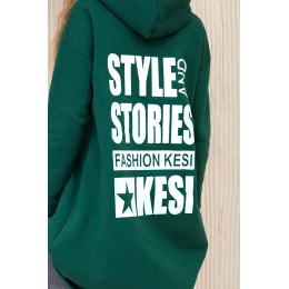 Zateplená mikina s dlhým chrbtom a kapucňou tmavo zelená