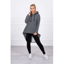 Zateplená mikina s dlouhými zády a kapucí v grafitové barvě