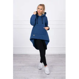 Zateplená mikina s dlouhými zády a kapucí, tmavě modrá