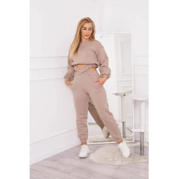 Zateplená súprava s krátkou mikinou tmavo béžová