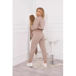 Zateplená souprava s krátkou mikinou tmavě béžová