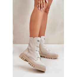 Zateplené boty pro ženy na zip z eko kůže světle béžové model 21670042 - Boto